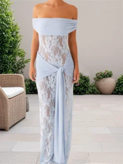 Women’s Long Dress for Party Evening Short Sleeve Off Shoulder Strapless