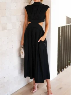 Women Long Dress Sleeveless Low Cut Backless