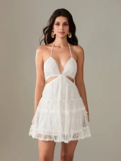 Be the first to review “Women Lace White Dress Tie-Up Halter V-Neck” Cancel reply
